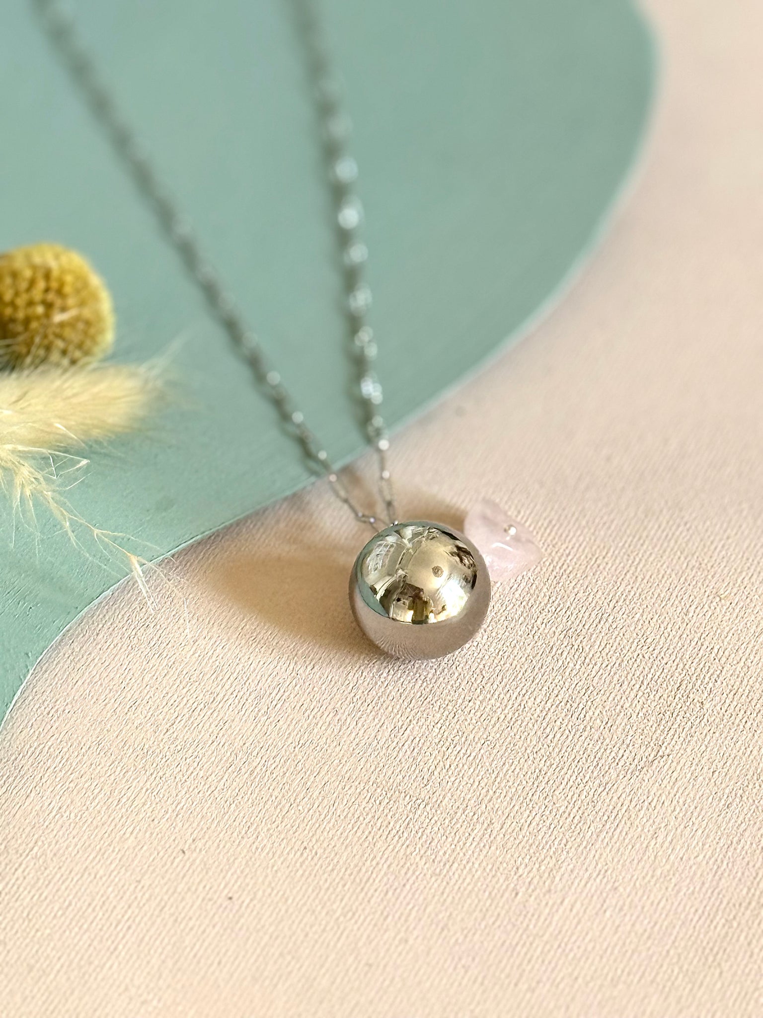 Sa chaîne ajustable de 1,20 m permet de modifier la longueur au fil de la grossesse, pour toujours s’adapter au ventre qui s’arrondit. Disponible en dorée ou en argentée , le collier Bola se porte facilement avec tous les styles. La chaîne et la Bola sont réalisées en acier inoxydable, un matériau robuste qui ne ternit pas avec le temps et garantit une grande durabilité.