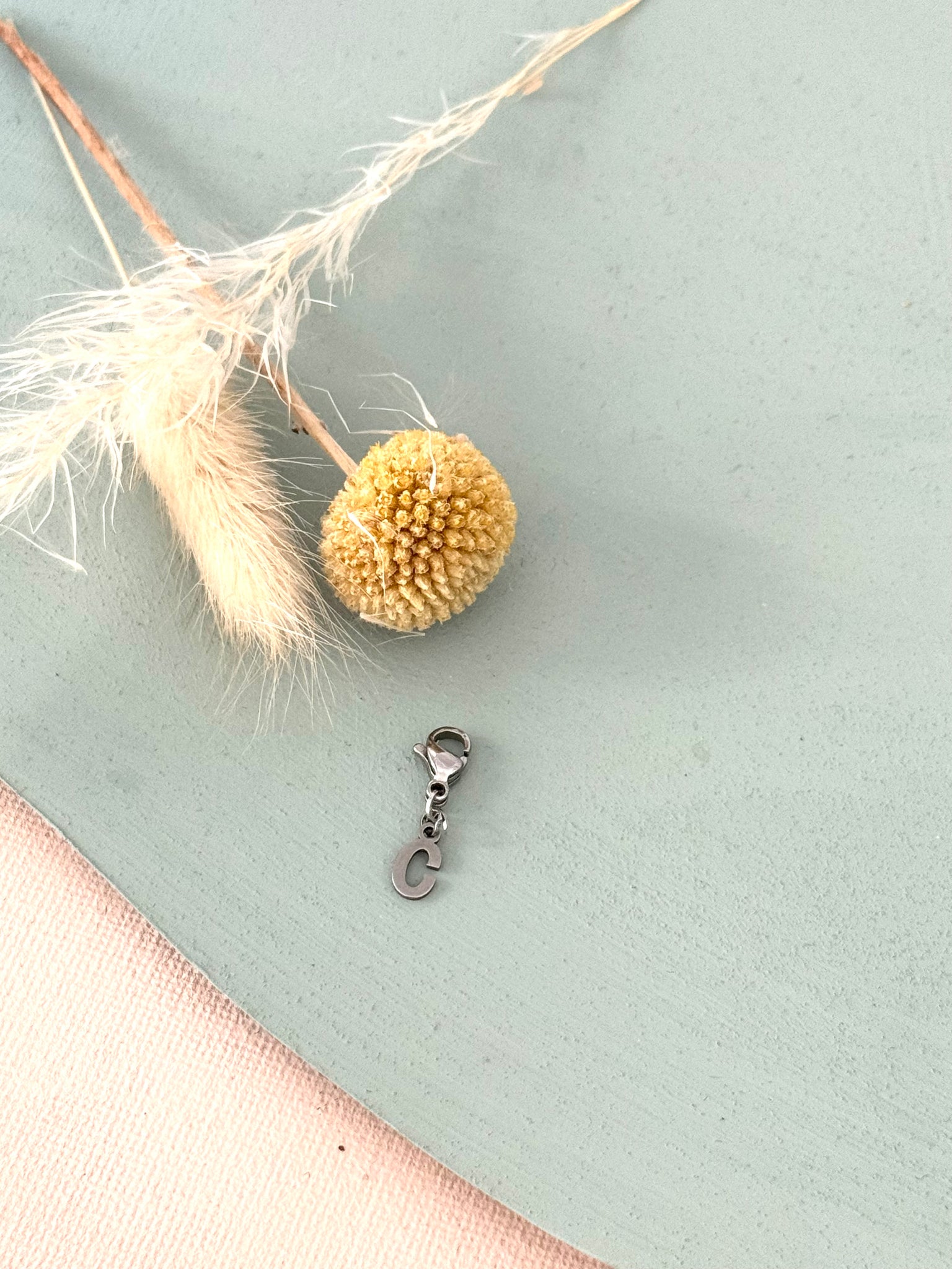 Personnalisez votre Bola avec des « charms lettres »de l’alphabet, disponibles en doré ou en argenté. Il est agréable d’ajouter l’initiale de votre futur enfant, mais aussi, pourquoi pas, celle du papa, de la maman, ou encore des frères et sœurs, pour un bijou plein de tendresse et de sens. Ces petits pendentifs en acier inoxydable, mesurant 1 cm (plus un fermoir de 9 mm), peuvent s’accrocher facilement à différents endroits de votre chaîne Bola, pour créer une composition unique à votre image